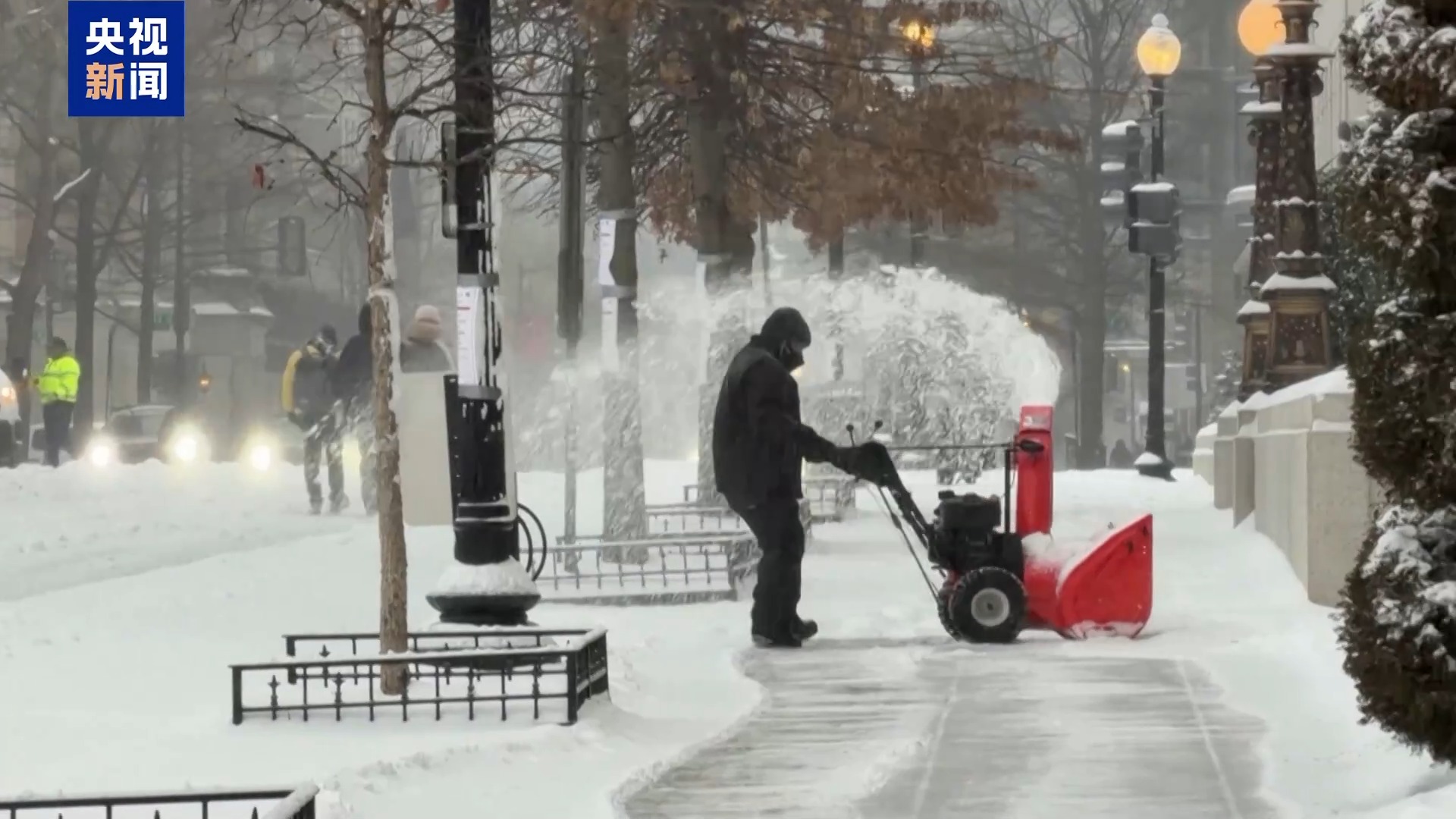 央视记者 刘旭:现在是美国东部时间26日早上。在经历了持续近20个小时的罕见降雪之后,美国首都华盛顿地区的降雪量普遍超过20厘米。在我站的位置,积雪已经没过了脚踝。