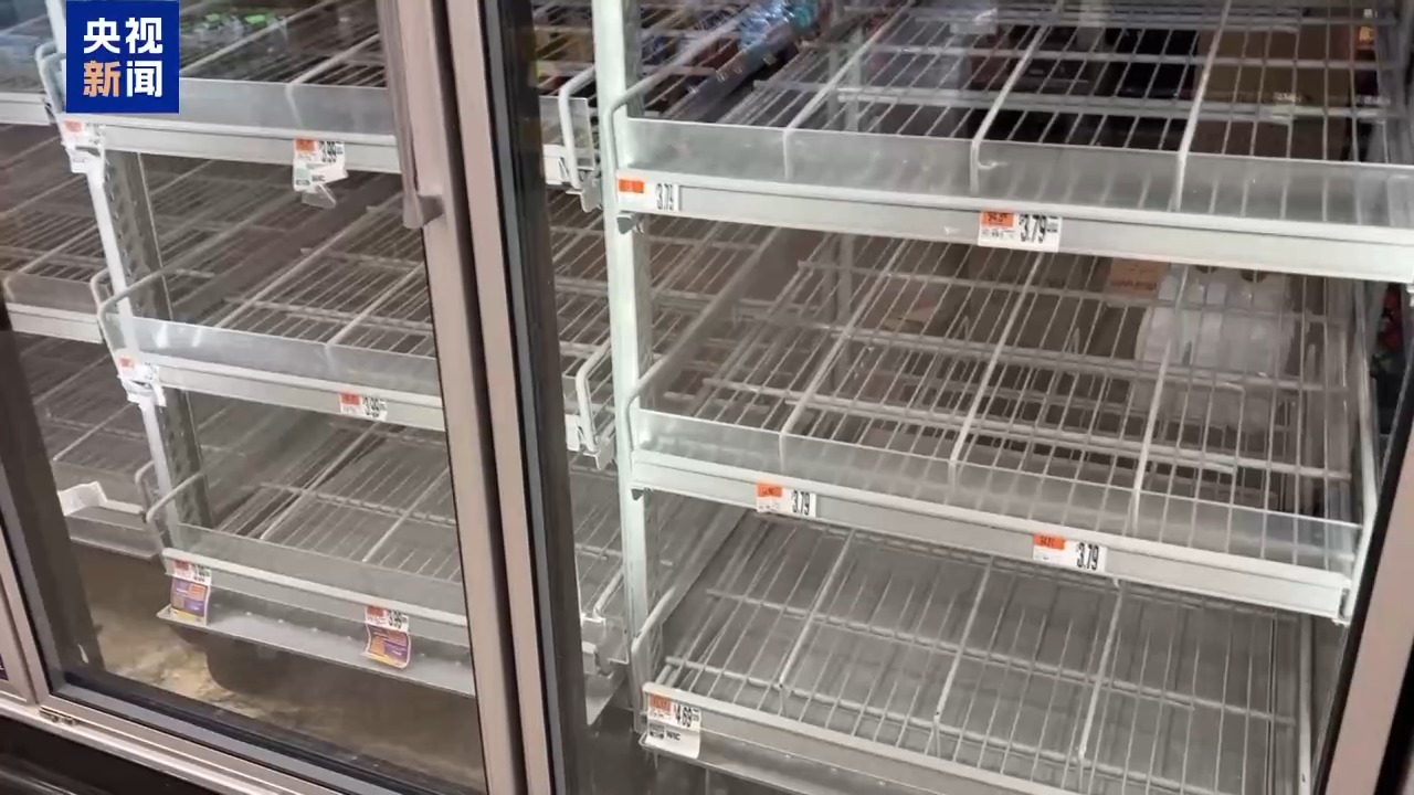 央视记者 刘旭:华盛顿地区的地铁交通都采取减少路线、减速运行的措施。首都地区的三大机场25日有上千架次的航班被取消。在华盛顿一个商业区里,只有保障民众日常必需的超市还开门,但营业员和顾客都很少。很多人已经提前储备了物资。暴雪导致物资供应受影响,摆有牛奶、蔬菜的货架出现部分被搬空的情况。